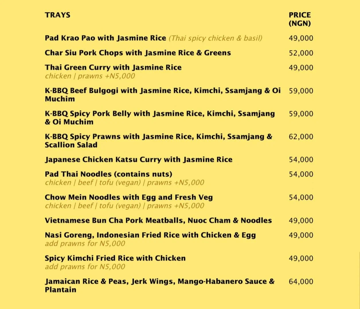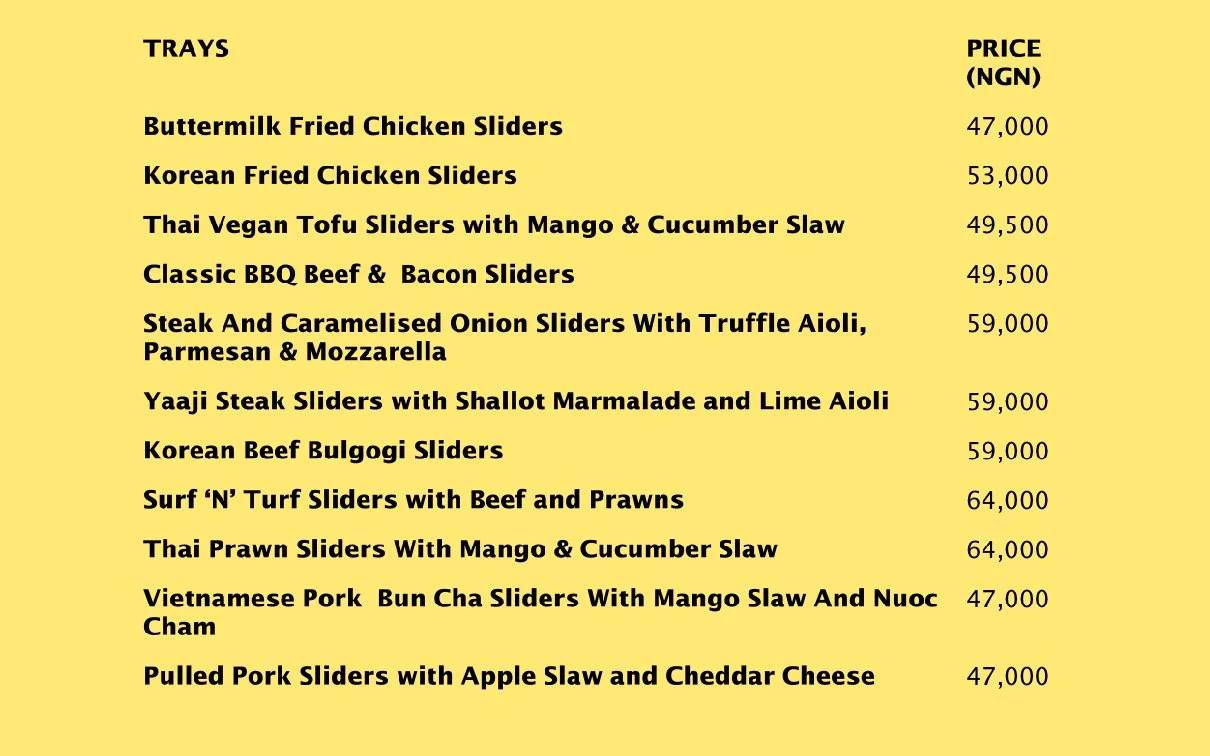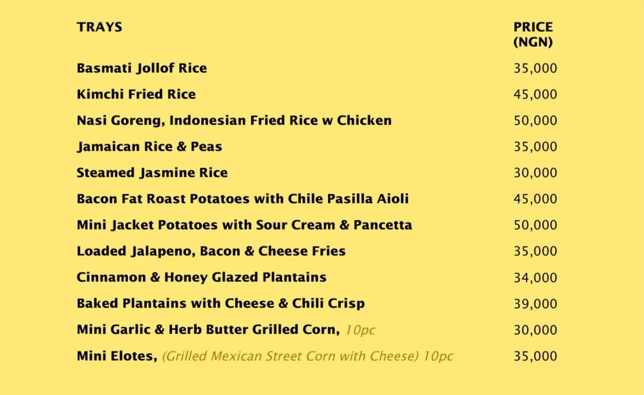 Our Tray Menu